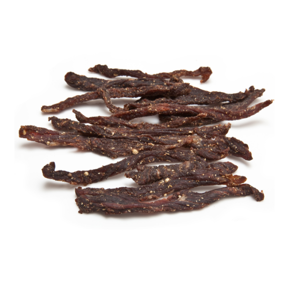 90% + dehydrated biltong snap sticks approximately 5mm thick, not to be confused with wet thicker biltong sticks. Our biltong is made the Traditional South African way. Only the best premium grass-fed beef, and the finest ingredients, which combine to make our mouth-watering choice grade biltong and Drywors. Bites offer a fiery twist on traditional biltong, delivering a spicy kick with each bite. Made from premium beef cuts, seasoned with a blend of aromatic spices, and infused with bold chili flavor, these bite-sized treats pack a punch. The tender texture of the biltong pairs perfectly with the intense heat of the chili, creating a tantalizing flavor experience that's both savory and spicy. Whether enjoyed as a snack on its own or paired with cheese and crackers, Bites are sure to ignite your taste buds and satisfy your craving for bold and flavourful snacks. Slowly air dried with attentive love and care for up to 4 days, then packed into convenient size packs for the high protein perfect beef snack.