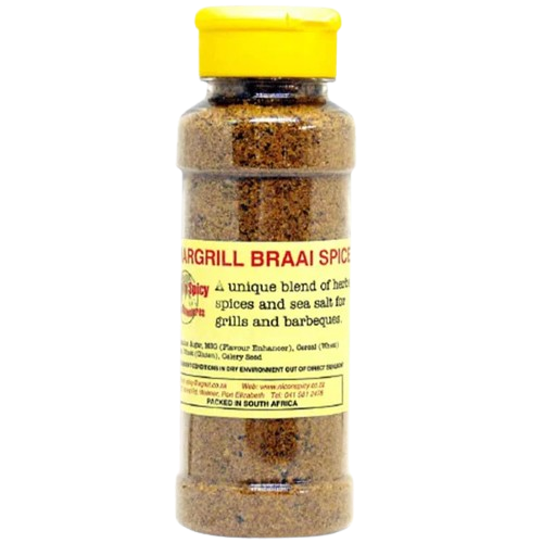 Nice n Spicy Chargrill Braai Spice 250ml is a bold, aromatic seasoning blend crafted to bring authentic South African braai flavour to your kitchen or outdoor grill. Packed with a balanced mix of herbs, spices, and smoky notes, it enhances the natural taste of meats, chicken, seafood, and vegetables. Each sprinkle delivers a satisfying combination of savoury depth and gentle heat, helping you achieve that perfect chargrilled taste without the need for complicated marinades. Its convenient 250ml shaker makes it easy to season food evenly, whether you’re prepping before cooking or adding a final touch at the table. Ideal for braais, weeknight dinners, or experimenting with new flavour combinations, this spice blend guarantees delicious results with minimal effort. Versatile and reliable, Nice n Spicy Chargrill Braai Spice is a must-have for anyone who loves robust, smoky, and well-rounded seasoning that transforms everyday dishes into flavour-packed favourites.
